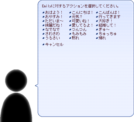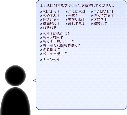 例えば対象がよしのの場合、設定ファイルを読み込むことで、「それはあなたです!」のメニュー表示は以下のようになります。