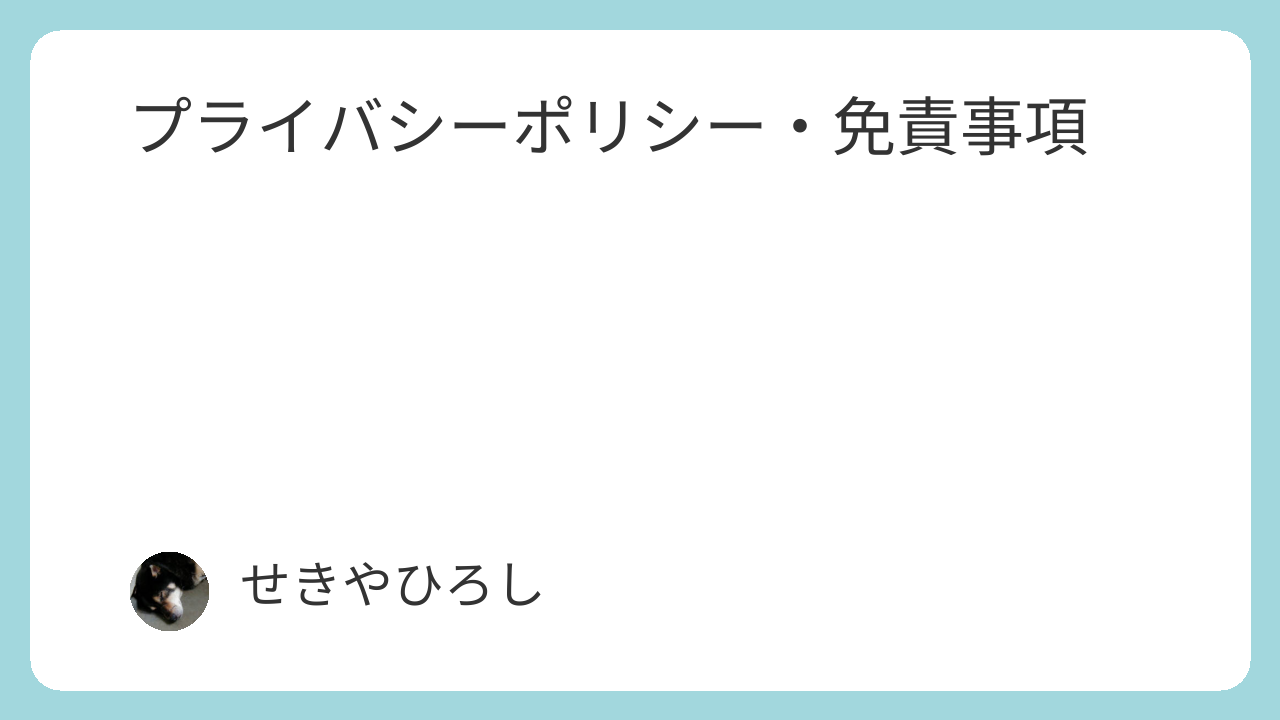 本プライバシーポリシーは、せきやひろしが運営するブログ「せきやひろしの雑記帳」(URL: https://hironet.jp/blog/ 以下、当ブログ)における、個人情報の取扱いおよび免責事項を定めたものです。